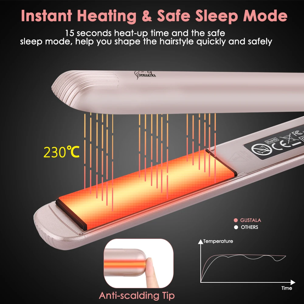 Хорошая прическа поможет нам получить хороший внешний вид, чтобы поднять себя и дать нам уверенность. Но ходить в парикмахерскую, чтобы сформировать прическу часто будет стоить много денег, что также теряет время. Не волнуйтесь. Этот Керамический выпрямитель для волос GUSTALA (включая функции выпрямления волос и завивки волос) попадет в точку. С этим мы можем сделать прическу свободно дома. Просто верните его домой и попробуйте, что не подведет вас.
